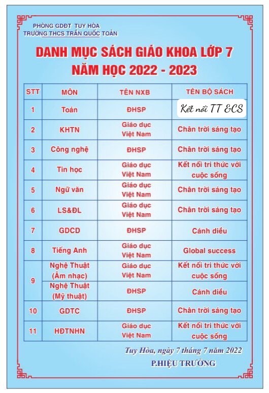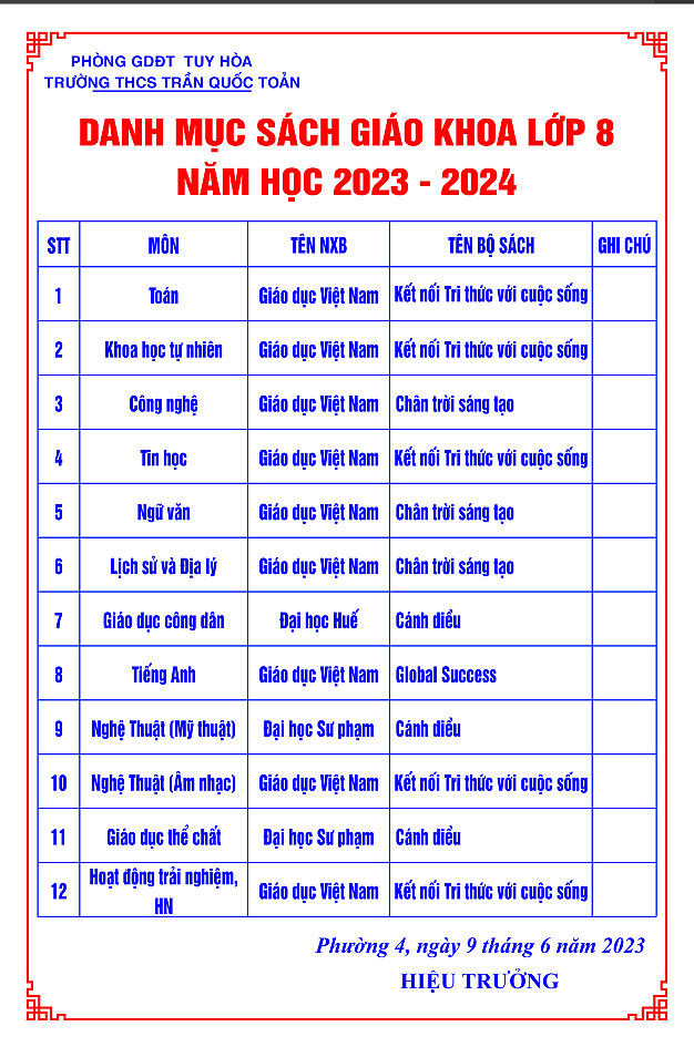 3. DANH MỤC SÁCH GIÁO KHOA NĂM HỌC 2025 – 2026